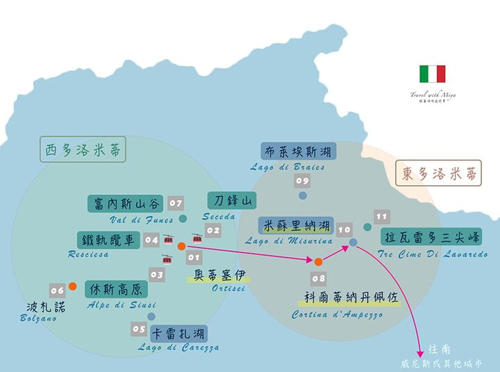 【多洛米蒂自駕】11 城鎮行程路線地圖